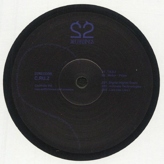 Cruz (often stylised as C.ru.z) finds resident resolve in his alma mater 22Recordings, riding the propulsive exhaust trails of 2023’s ‘Capitulo’ with fellow Slovenian slalomer Eliaz through to his own now solo venture, ‘Capitulo VIII: Los Anfitriones Del Cosmos’. It would seem that these records have surfaced like lost horror artefacts of some treacherous planetary mining mission gone awry, since we can only find records of issues III and VIII in the series – perhaps the others are locked away in some alien lair somewhere. But the ones so salvaged here have been preserved in pristine clarity, and boy are they delightful, with ‘Motor-Pisco’ and ‘Digital Higher Costs’ riding gleeful lead melody-maladies and unisoned, VCO boosted stabs.