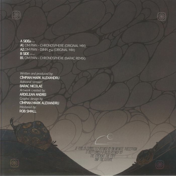 Cim Pian is Romanian producer and DJ Cimpian Mark Alexandru and this is another cultured outing from him. Known for his deep ties to Romania’s minimal house movement, Cim Pian has contributed multiple tracks to this label but finds a newly refined underground sound here across two original tracks: the title track ‘Chronosphere’ which is a minimal breakbeat composition with dark, immersive atmospheres, and ‘Djinn,’ a 4/4 minimal house piece with oriental influences and hypnotic grooves. The release also includes a masterful remix of ‘Chronosphere’ by Barac who adds signature depth and detail and the artwork, created by Andrei Ardelean and Cim Pian, perfectly encapsulates the music’s essence.