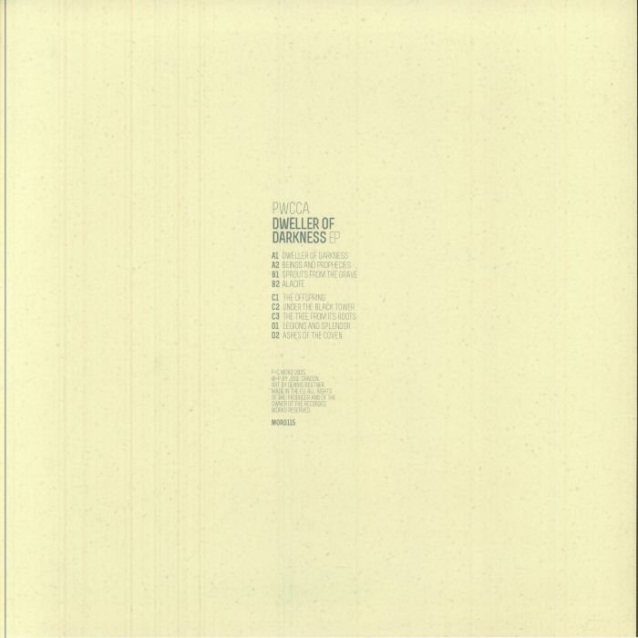 Madrid’s PWCCA (Jose Chacon Benito) prefaces his new techno release with the hushed assertiveness of an occult initiate: «My heart is a thousand years old. I am not like other people.» Couple that with the stony, Medusa-Magrittian bowler hat donning dandy on the front cover, and a nonagram of tracks with track names like ‘Under The Black Tower’, ‘Beings And Prophecies’ and ‘Ashes Of The Coven’, and you’ve succeeded in jacking the creepy slider past max. The tunes are creatively dark constructions, dealing in drastic but out-of-shape synth patches, made to evoke ritual tuned percussions and otherrealmly, wordless sonic curses; the title track ‘Dweller Of Darkness’ the best case in point.