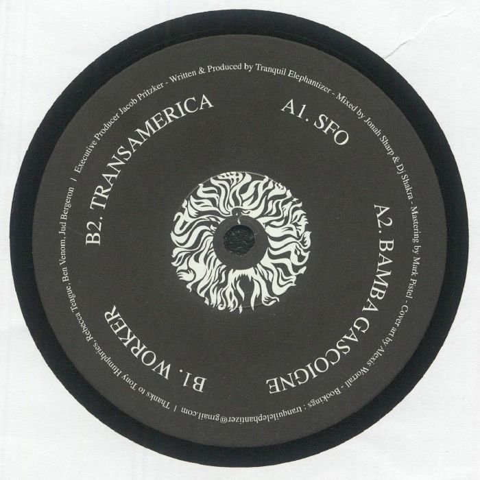 Operative since the mid 1990s with a subtly evolving sound rooted in deep dancefloor psychedelia, London/San Francisco collective Tranquil Elephantizer have recently become active in the studio again after a few years off. This fine four-tracker is the result. They begin with the dubby, tactile and warming deep house wonder that is ‘SFO’, a ten-minute fusion of heady horns, jazzy deep house beats, smooth bass and classic house stabs. They reach for New Jersey style organ licks on the break propelled garage-house jazz of ‘Bamba Cascoigne’, where more fine horn arrangements catch the ear, before offering up the mazy acid bass, sunny piano stabs and live drums of ‘Worker’. Best of all though is ‘Transamerica’, a deep, string-laden and TB-303 powered slab of bittersweet acid melancholia.