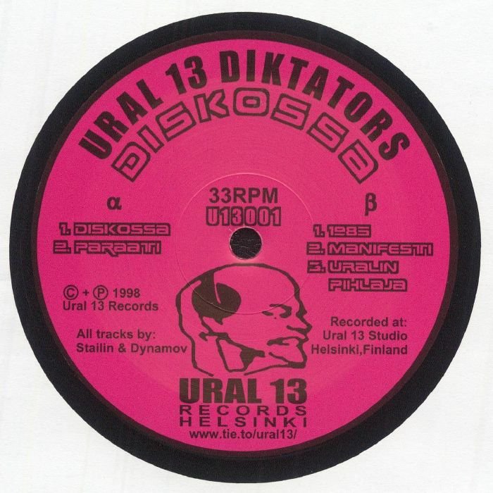 Helsinki electro outfit Ural 13 Diktators return with a long-overdue repress of their 1998 debut, ‘Diskossa’. An aesthetically Leninist 12″, this supermontane EP consists in Hi-NRG-inflected, neo-Soviet electroclash, and nods to traditional Finnish melodies, highlighting the supervigilante band’s early experimental edge. Mastered from the original tapes and lacquer cut in 2025 by Mike Grinser at Manmade Mastering in Berlin, the repress brings renewed clarity to tracks like ‘Diskossa’, ‘Paraati’, ‘1985’, ‘Manifesti’, and ‘Uralin Pihlaja’. A previous glimpse into late-90s Eastern European experimentation in techno, where ringmod vocoders and toddling synth lines brought a zany, plucky, gaga edge to the sound.