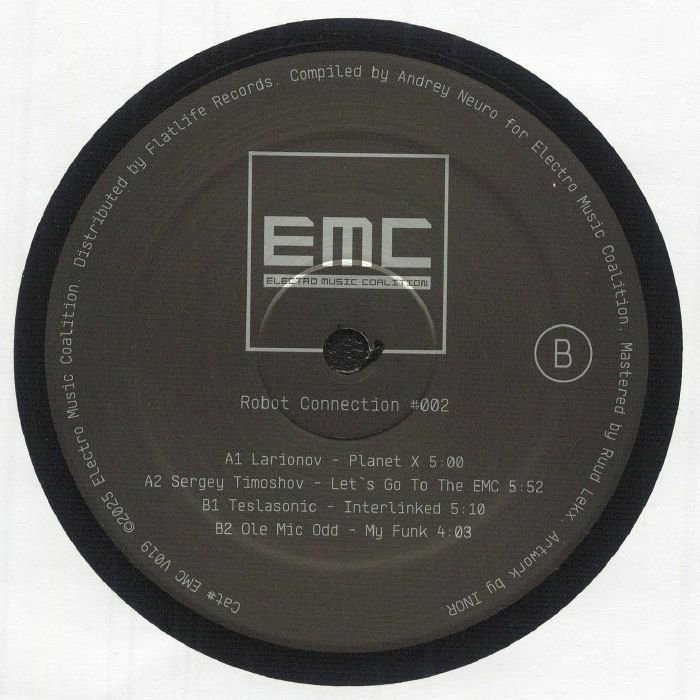 The second Robot Connection volume wires us up good, as four producers with different slants on electro knit up a nice 12″ twine through Electro Music Coalition. Russian artist Larionov, who has been refining his wiry machine-funk across labels like Mechatronica and Rotterhague, appears alongside Sergey Timoshov, a fellow Russian digging into darker, more mechanical grooves. Italian duo Teslasonic, known for coldwave atmosfears and robust drum programming, deliver another slice of synthetic propulsion, while US producer Ole Mic Odd closes with his trademark blend of old-school breaks and jagged synth riffs. Taken together, Robot Connection 002 extends the collective’s focus on international currents in electro, tying together sharp minimalism, noir textures and funked-up circuitry.